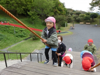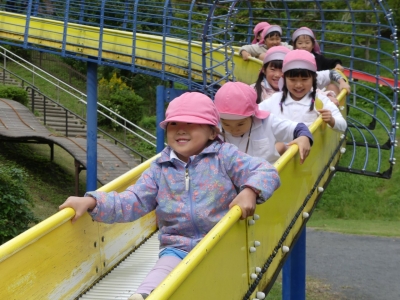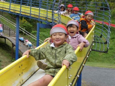ローラー滑り台やアスレチックで体をいっぱい動かして遊びました。